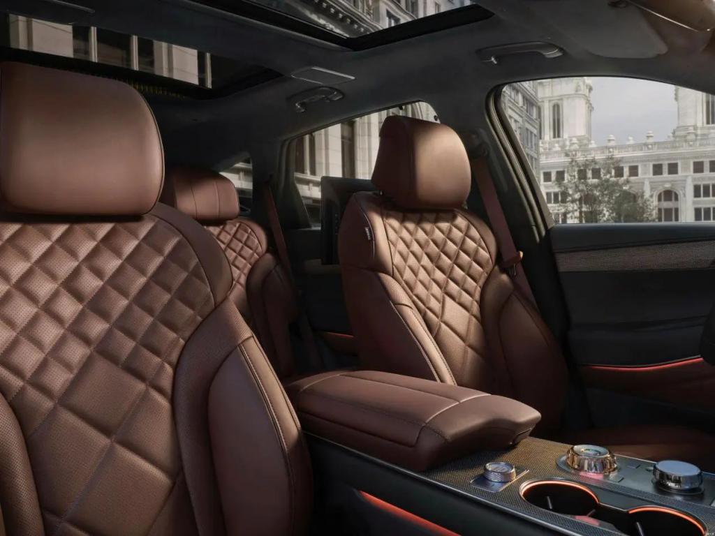 内饰方面同样是全新的家族化设计风格,内饰换装全新 27 英寸一体式悬浮 OLED 屏幕,与 HUD 抬头显示一起组成多屏联动。新车拥有三辐式多功能方向盘以及旋钮式电子换挡机构。配置方面,新车标配了自动驻车、上坡辅助、悬架软硬调节、前后驻车雷达、倒车雷达、L2 级别辅助驾驶、电动感应尾门、无钥匙进入、一键启动、自动 LED 大灯、自动雨刷、方向盘加热等功能。