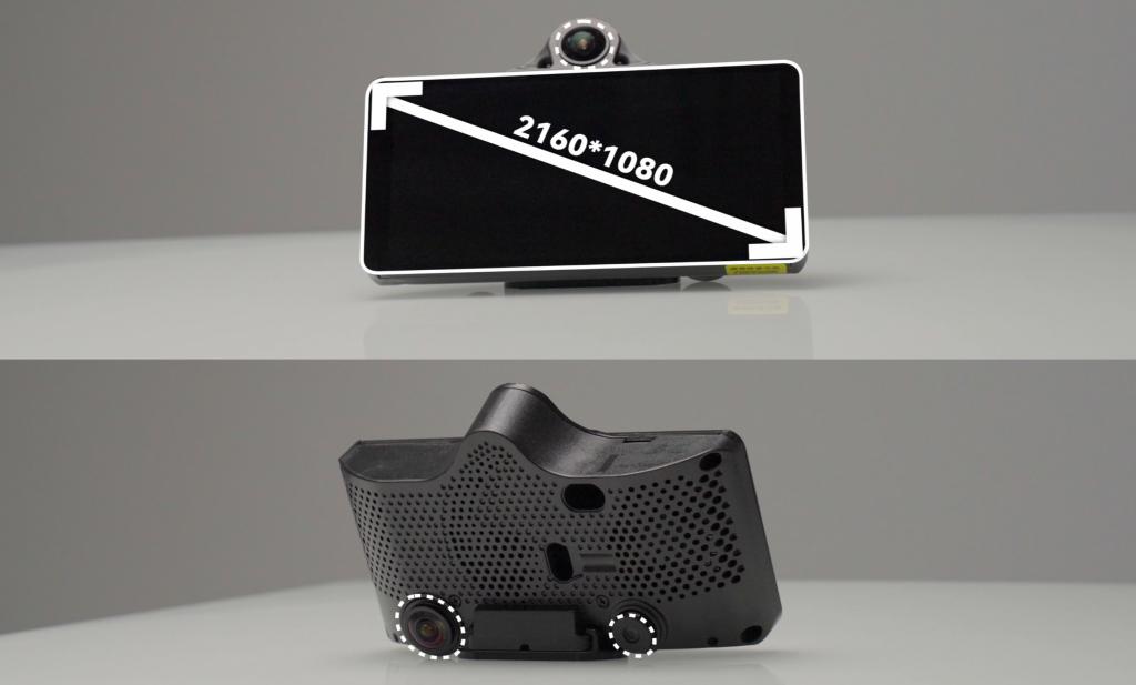 从结构上看,它有着一个 3D 打印的外壳、前后共计 3 个的摄像头、一块清晰度还不错的显示屏以及一个能把它粘在前挡玻璃上的支架。