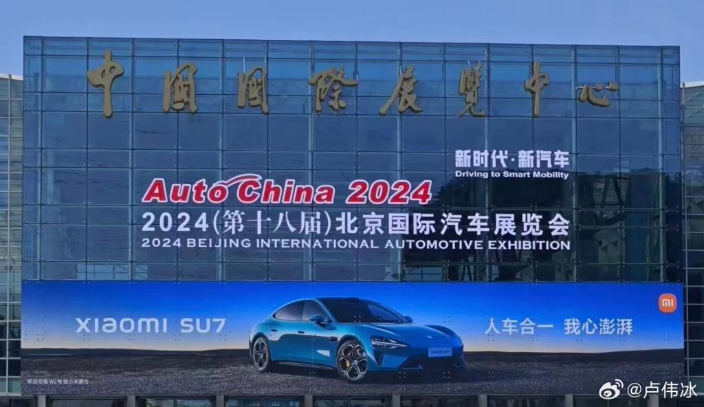 小米甚至把广告打到了 2024 北京车展大门上,小米汽车 SU7 大横幅占领整个门头。
