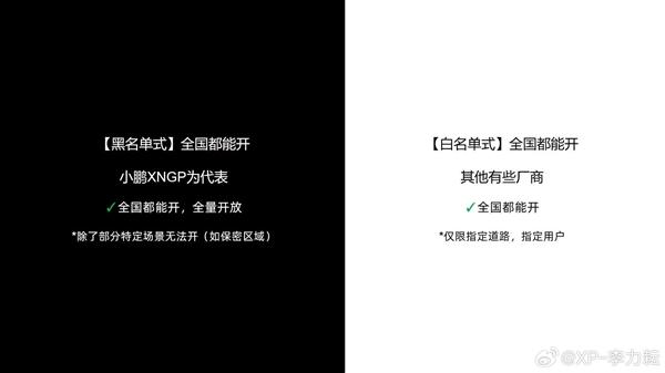 另一种【黑名单式】全国都能开,除了部分特定场景无法开(如保密区域等),其余全国所有路都能开,且对全量用户开放。