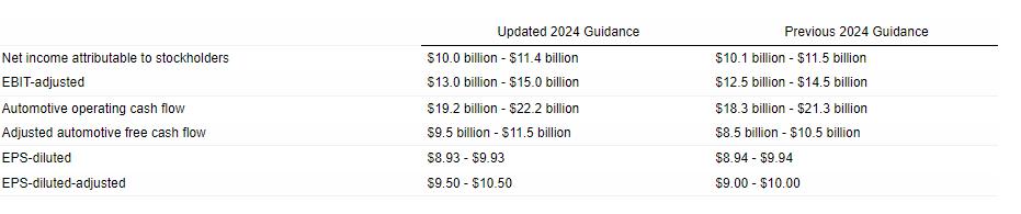 现金流:预计全年调整后的汽车业务自由现金流为 95-115 亿美元,高于此前 85-105 亿美元的指引。