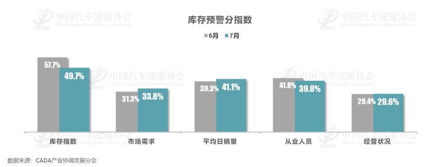 车企高温假加之传统淡季,经销商补库力度降低,库存水平较 6 月有所回落,但库存预警指数位于荣枯线之上,汽车流通行业处在不景气区间。