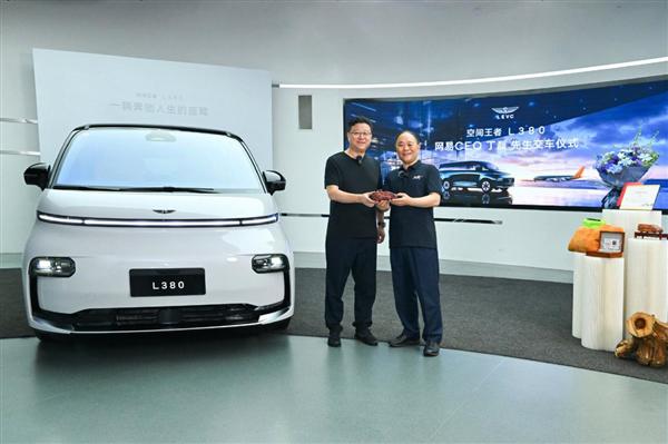 快科技 8 月 2 日消息,吉利控股集团董事长李书福近日在吉利总部举行的交付仪式上,亲自将豪华纯电 MPV ——翼真 L380 交付给网易 CEO 丁磊。