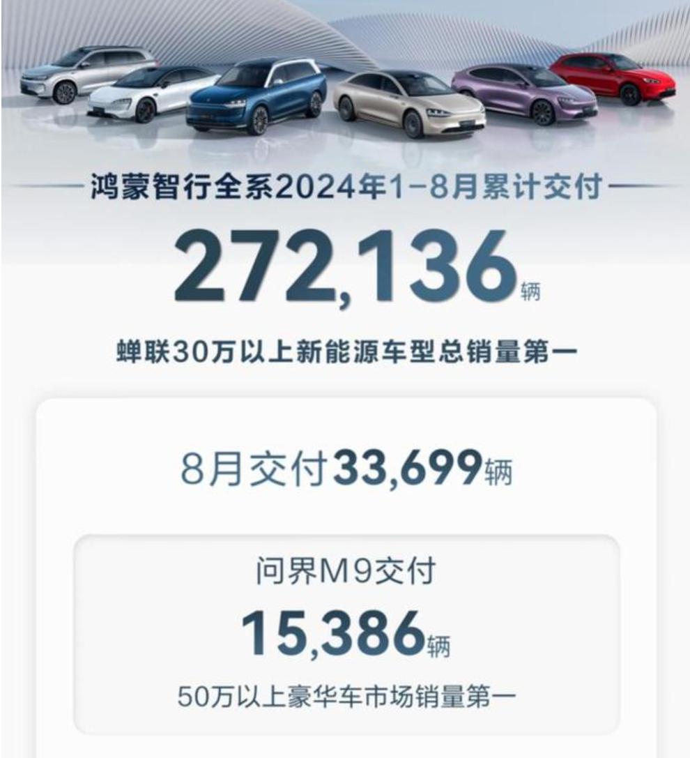 理想的老对手问界 8 月则面临了增长乏力的情况,据赛力斯发布的数据,问界交付量 3.1 万辆,环比下降了 24.8%。最高端的问界 M9 反而最有统治力,1.5 万的销量是 35 万以上豪华 SUV 的最强单品,反而是 M7 只是刚破万。接下来就看新 M7 Pro 能不能扭转局面了,赛力斯方面对此很有信心。
