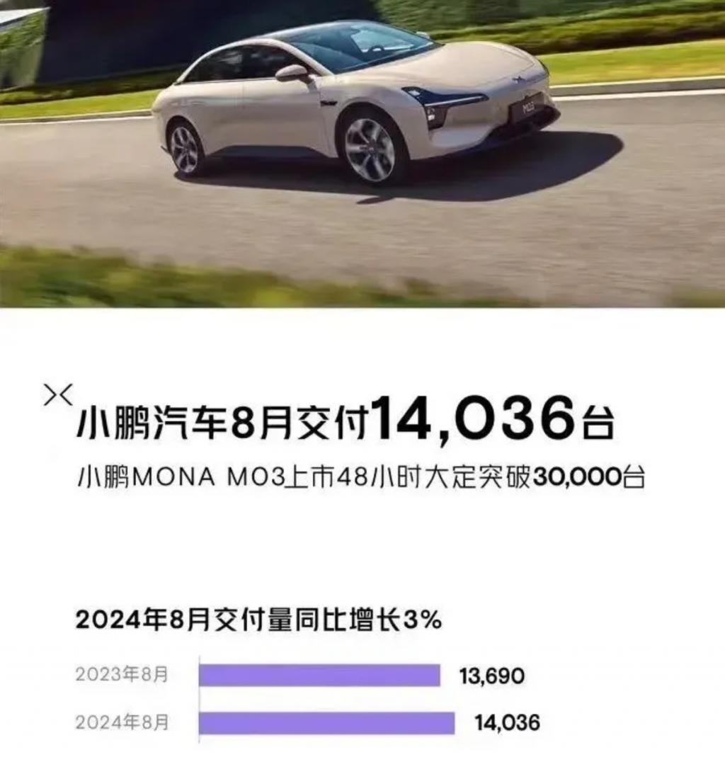 小鹏也非常值得大家关注。在零跑爆发式增长站上月交付 3 万的台阶,蔚来又站上 2 万辆后,小鹏这个新势力元老在 8 月的市场普涨下,同比增长 2.5%,1.4 万辆的销量只能说尚可。但从好的方面看 25.9% 的环比增长也说明小鹏在重新找回状态。而且新车 MONA M03 相当有竞争力,上市 48 小时订单破 3 万,接下来小鹏有望重回上升通道中。