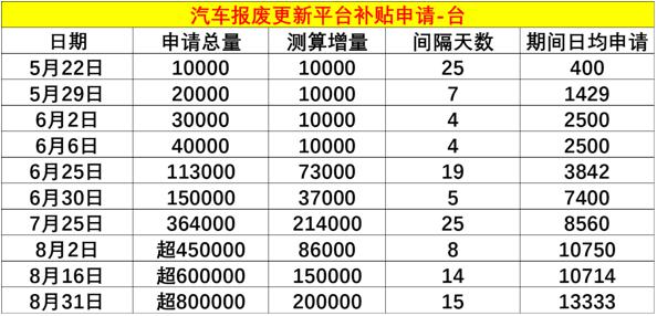 此次以旧换新补贴力度非常大,对促进消费者换车有相当大作用。根据全国汽车以旧换新平台最新数据显示,可以看到 7 月 25 日补贴政策发布后,以旧换新申请量出现了大幅增长,8 月底日均申请量已经达到 13333 份的高峰。