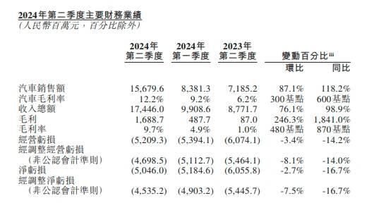 9 月 5 日,蔚来汽车交出了 2024 年二季度成绩单。当季营收 174.5 亿元,同比增长 98.9%,环比增长 76.1%,高于市场预期的 173.8 亿元;调整后的运营亏损 47 亿元,同比下降 14%,低于市场预期的 48.6 亿元;整体毛利率为 9.7%,同比增长 8.7%,高于市场预期的 8.74%。