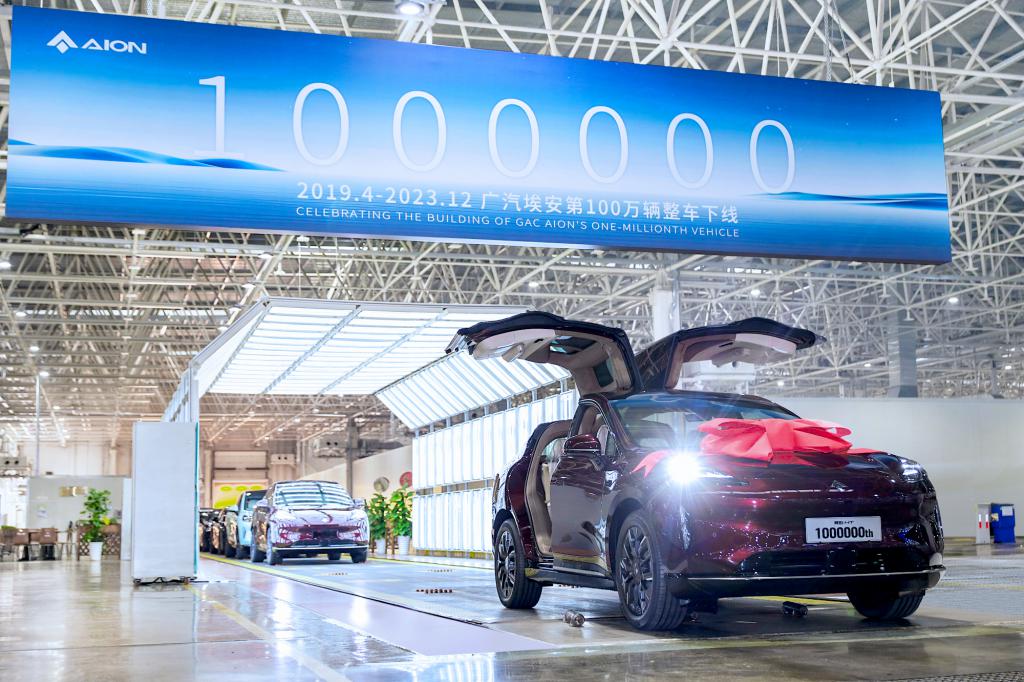 从 2019 年首款车型发布开始,广汽埃安每年销量翻倍式增长,2023 年达到 48 万辆,同比增长 77%,累计销量超过 100 万辆,是最快达成 100 万新能源汽车销量的车企。