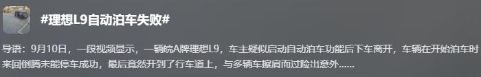 一段理想 L9 自动泊车失败的监控视频被公开,引发广大网友的关注。