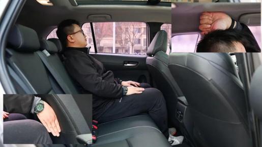 最后来看看锋兰达的空间表现。以我174cm、87kg的身材,调整好前排驾驶坐姿,并将座椅放到最低位置后,前排头部空间为1拳4指,表现非常出色。但师从C-HR的2640mm轴距,导致锋兰达的后排腿部空间并不充裕,只有4指的水平,好在平直的车顶线条换来了1拳的头部空间,并且更大的后车窗面积和浅色的车顶棚,都让它并没有C-HR后排那种压抑感,更适合居家出行。