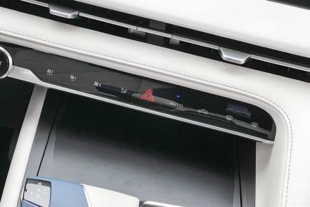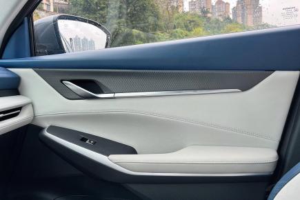 皮质包裹的三幅式多功能方向盘前端为嵌入式的12.3英寸液晶仪表盘,查看十分便捷,中控有着嵌入式设计的9英寸中控屏,看着略显小气一些。软料材质在中央扶手区、侧门等部分有着较多覆盖,触感和质感较强。