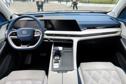 在内饰方面,长安CS75 PLUS中控及侧门区域加入了有效提升质感的点状/条纹饰板。