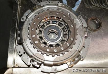 抬下大众朗逸双离合变速箱就能看到内部的飞轮盘。