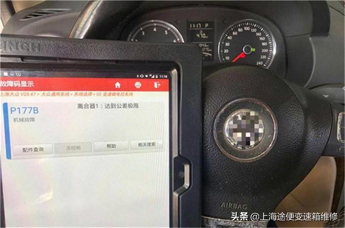 用车检查电脑检查,有故障码P177B离合器1:达到公差极限。