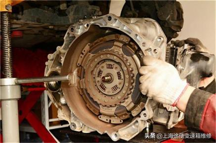 取出离合器检查。朗逸双离合变速箱的离合器是易损件。