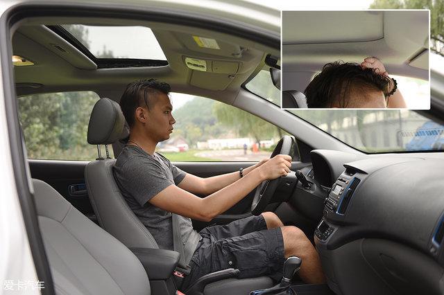 乘坐空间方面,身高180cm的体验者坐进驾驶席,座椅调到最低,头部距离车顶3指,但好在天窗拓展出些空间。