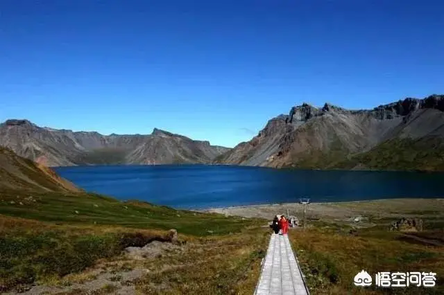 我们看看东边朝鲜的入口不仅可以到天池边上,还可以在天池坐快艇,为啥?谁让我们是人口大国呢?其实十多年前,由于游客的人数较少,北坡的游览路线有一条长廊专门供游人下到湖边去亲近水面的。
