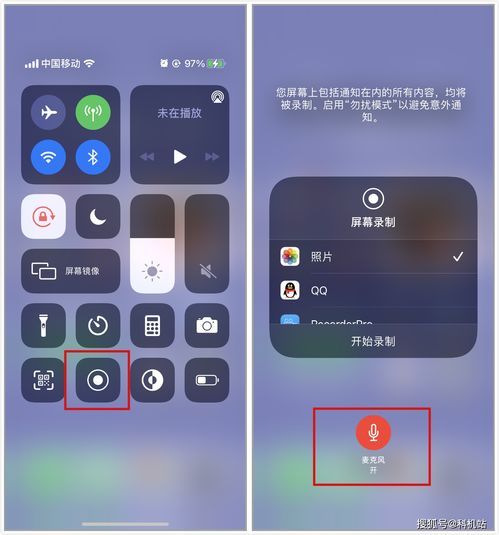 接下来,打开手机,滑动屏幕上方的控制中心,你会看到一个投屏按钮(一个方框加上一个三角形),点击该按钮。