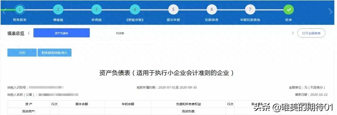 2.填写财务报表(资产负债表、利润表)点击“下一步”,需要点击两次~