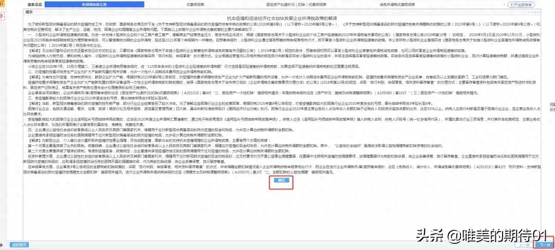 4.填写所得税(所得税申报主表、优惠明细表、固定资产加速折旧扣除优惠明细表)点击“确定”,点击“下一步”需要点击四次;
