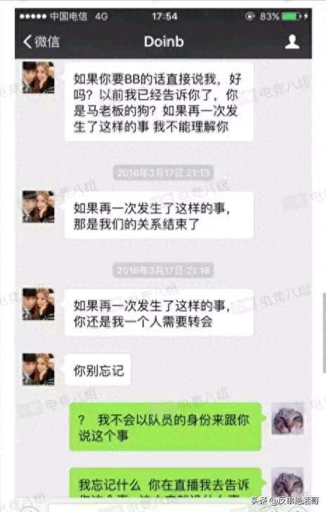 Doinb自2015年加入LSPL随后获得各项荣誉,伴随荣誉的同时他的一些“出格”举止和言论也被网络记忆下来。2016年中野恩断义绝1.0上演。那时候的Doinb只能勉强算一个厉害的知名选手,在那一场纠纷中失败的是Doinb,金泰相被下放到LSPL。不过那一场最大的受害者不是他,是UZI和EDG。EDG老背锅侠了,一分钟BO5因为EDG是得利者被骂做太子队,EDG债多不压身,反正他的黑点也不差这一个。另一个最大的受害者是UZI,喜欢UZI的说他被耽搁了一年,也有说不算被耽搁,QG将他从OMG捞出来就够意思了,最大的言论还是在于拆队狂魔的名分又坐实了几分。那一年的聊天记录是2016年3月17日。网友只看谁强那就偏向于谁,所以那一年的胜利者是十万伏特,同样的后来十万伏特消失在茫茫人海,舆论又回到了金泰相这边,现在的胜利者是Doinb。