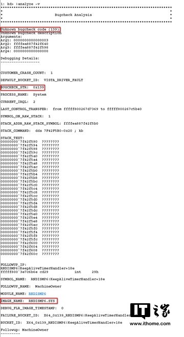 !analyze–v:详细分析命令。当然并不是每次分析都会得到可以直接推断出诱因的值,如果得到的是未知的或没有太多参考意义的值,还可以使用此命令进一步分析错误原因。可直接点击运行。
