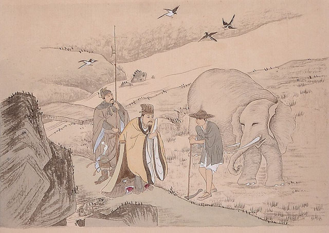 故事:据说舜的父亲、继母和他异母的弟弟多次想害死他,他们在舜修补谷仓时放火,在他掘井时填土企图将其掩埋,但舜都成功逃脱了。舜虽心里万般委屈,但仍然反省自己,认为是自己侍奉的不好,丝毫不记恨家人,还对他们一如既往的好。舜的孝行感动了上天,在他耕地时,大象跑过来帮他,小鸟来替他锄草。尧帝听说了,将自己的两个女儿娥皇和女英嫁给他,经过各种考察,让他继承了王位。舜在当了天帝后,依然十分孝顺自己的父母,对弟弟也很好,他的孝行便这样流传了下来。