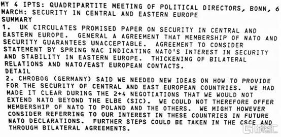 1991年波恩会晤纪要,美国助理国务卿承诺北约永不东扩