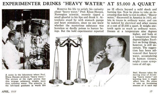 那个年代科学家的好奇心的是无穷的,早在氘被发现后不久就已经有人把重水喝下了肚。