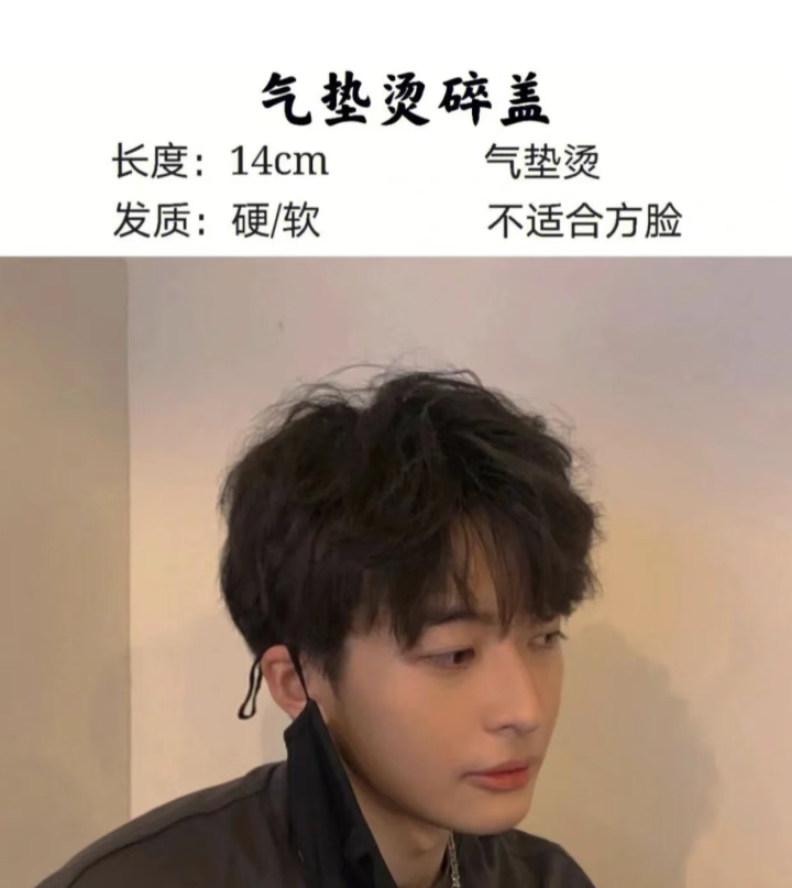 这种脸型的男士应避免选择服帖、顺直的发型,可以选择烫发增强头发厚度和曲线感,中和过于锋利的感觉。