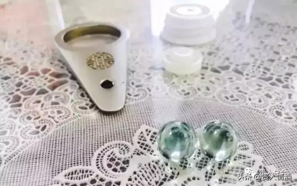 有人说是玻璃珠,也有人说是珍珠。其实,它就是小朋友玩的水晶玻璃珠,但是它的通透度和纯净度都比较高的玻璃珠,不论酒倒出来还是倒进去,都跟这两颗玻璃珠有关。