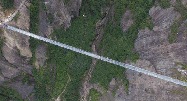 值风和日丽之时,踏在玻璃桥上,景区峡谷风光尽收眼底,行走其上彷如“人在空中走,景在脚下游”,惊险无比。