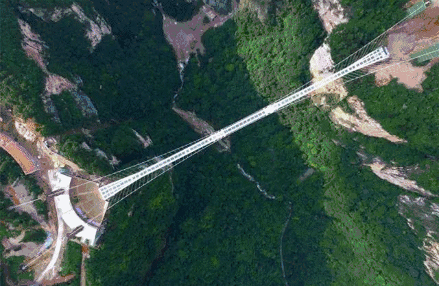 没错!龙凤山庄3D玻璃桥,正是将原有的3D地画,升级为这种碎屏特效。悬空高度88米,想想10米跳台的恐怖,这还算是个小数字吗?加上透明感,难免让人心生恐惧。