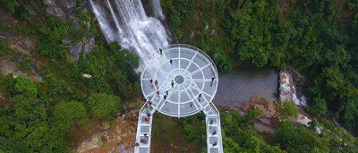 观瀑玻璃桥+悬空玻璃平台+玻璃栈道,组成了世界最大规模的高空玻璃组合—云天玻璃,其中悬空玻璃平台世界跨度最长。