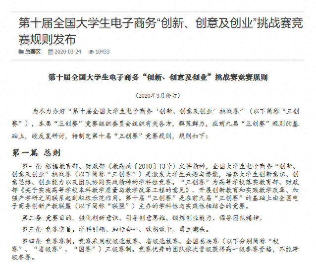 根据教育部、财政部(教高函〔2010〕13号)文件精神,全国大学生电子商务“创新、创意及创业”挑战赛(以下简称“三创赛”)是激发大学生兴趣与潜能,培养大学生创新意识、创意思维、创业能力以及团队协同实战精神的学科性竞赛。