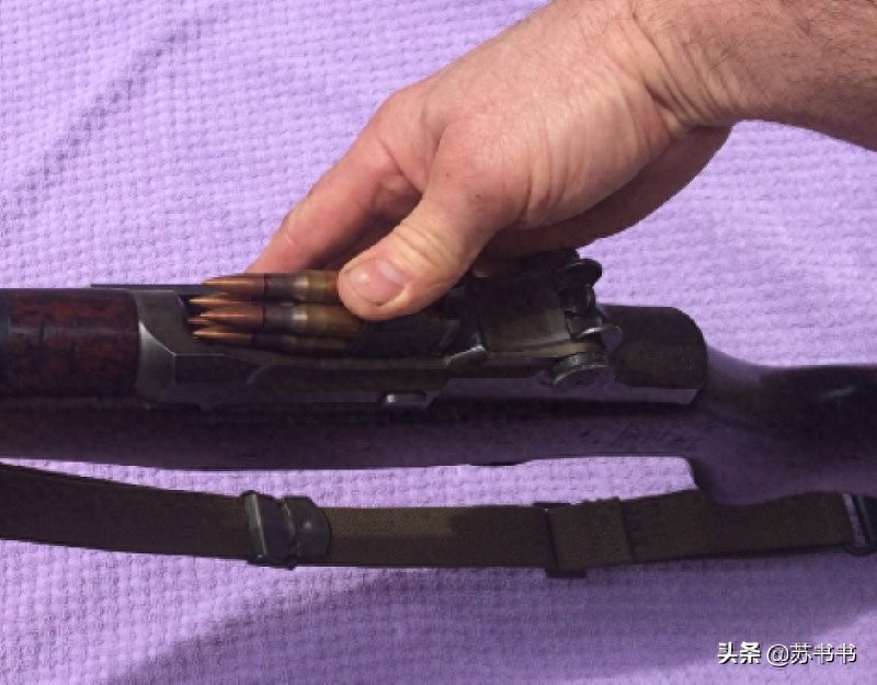 图为,M1加兰德装子弹的情景,由于故障手指受伤的情况很常见
