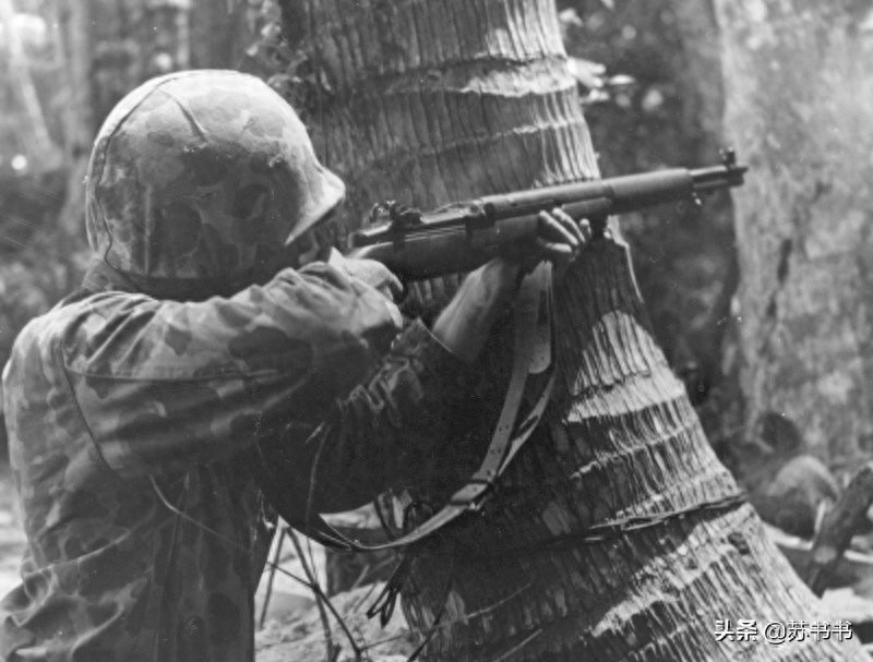 图为,在丛林中用M1加兰德射击的美国海军陆战队队员,出色的连射能力是其最大的优点