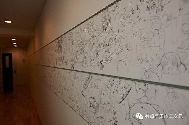 走廊的白板墙陈列的都是压轴级动画人的原画,铅笔绘制的线条非常漂亮