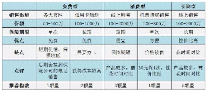 我对目前市场上所有的航意险进行的统计,主要可以分为如下几类: