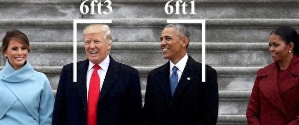 他们将特朗普与各类名人的合照进行严密的分析,从政坛到体坛,无一例外的,特朗普通常情况下都没有高过那些官方身高不如他的人。
