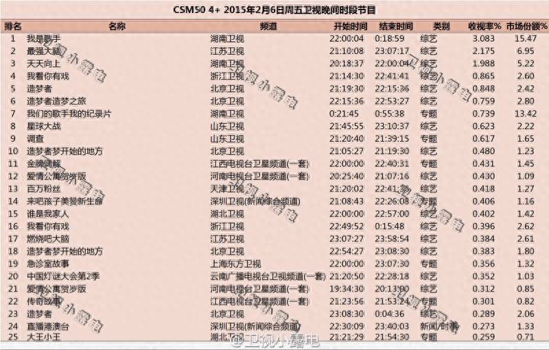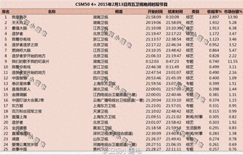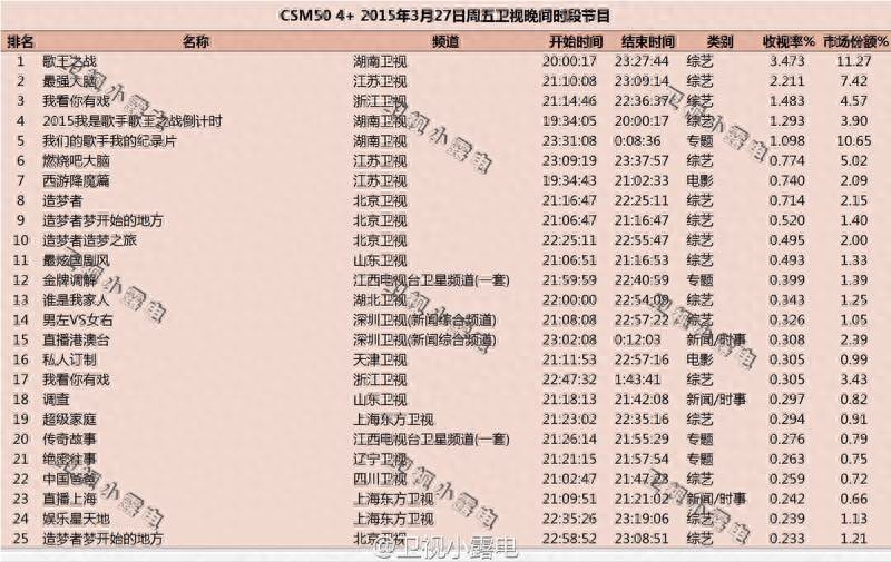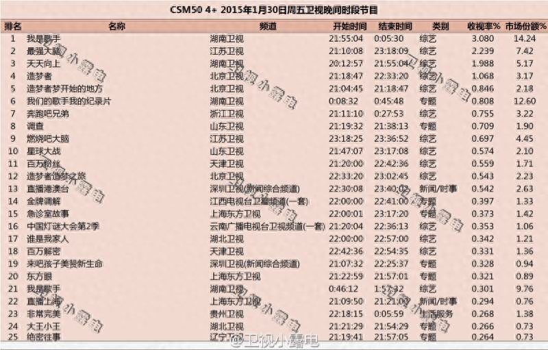历年《歌手》收视率最高的十期节目