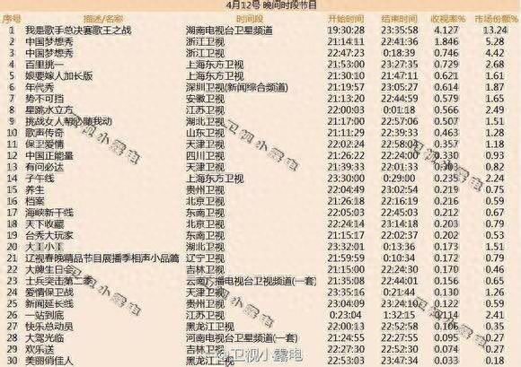 第一名:《我是歌手》第一季歌王之战 收视率4.127