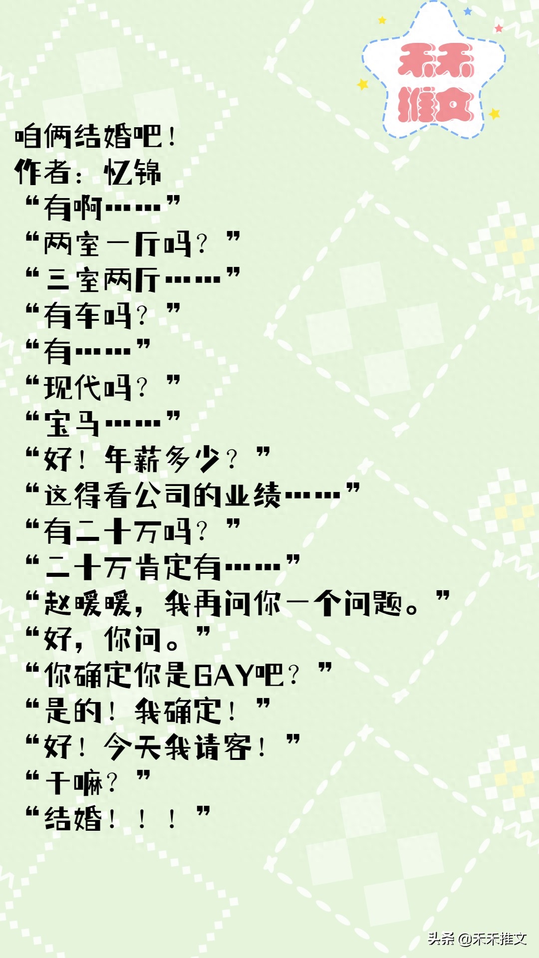 书评:女主被家里催婚,有没有喜欢的人,就找到了是GAY的男主,男主情况满足女主母亲的要求,两人就结婚了,之后两人日久生情,女主把男主掰正。