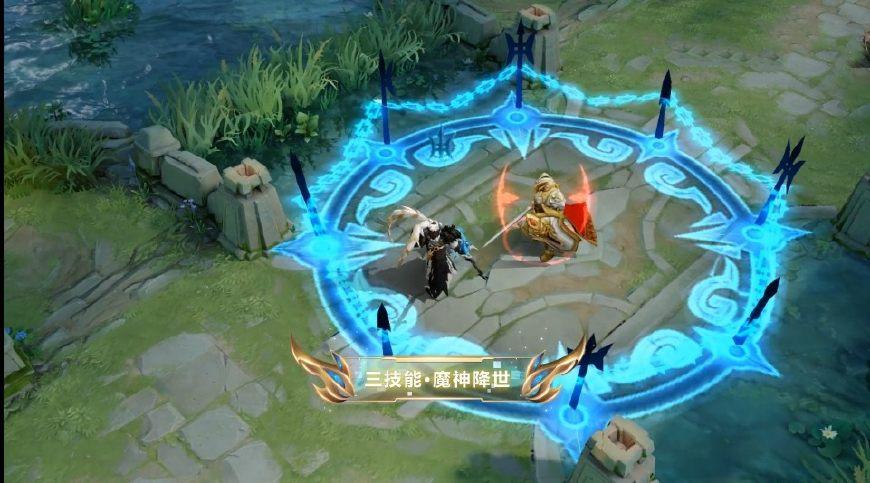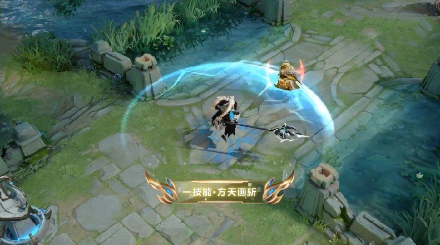 新皮肤的技能特效以蓝色为主,方天画戟挥出去的时候,仔细看能在蓝色光芒中看到闪烁闪电特效。