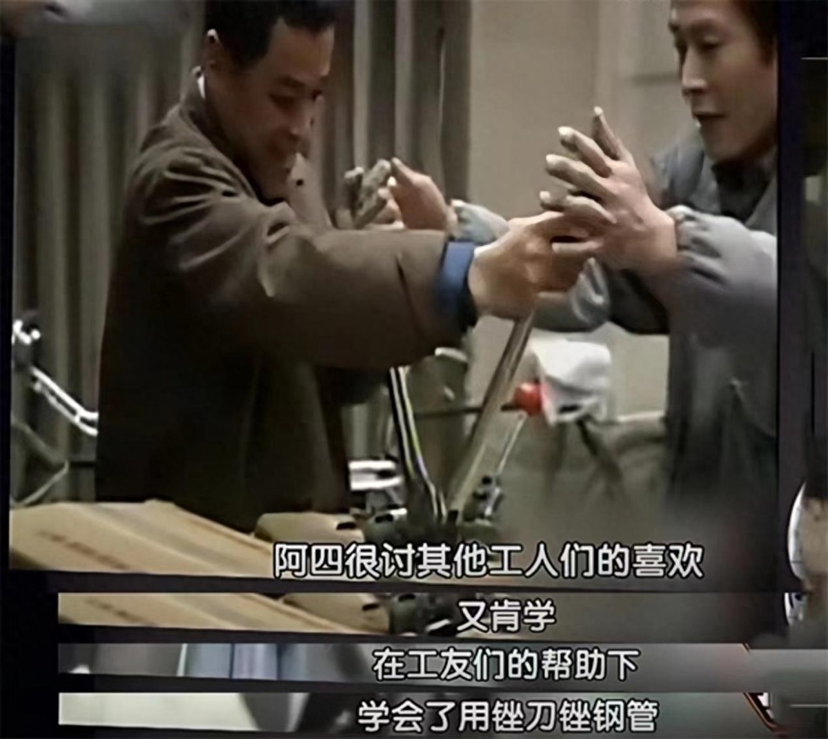 后来在街道办事处的帮助下,谢晋将四子送进工厂,做着用锉刀锉钢管的工作。