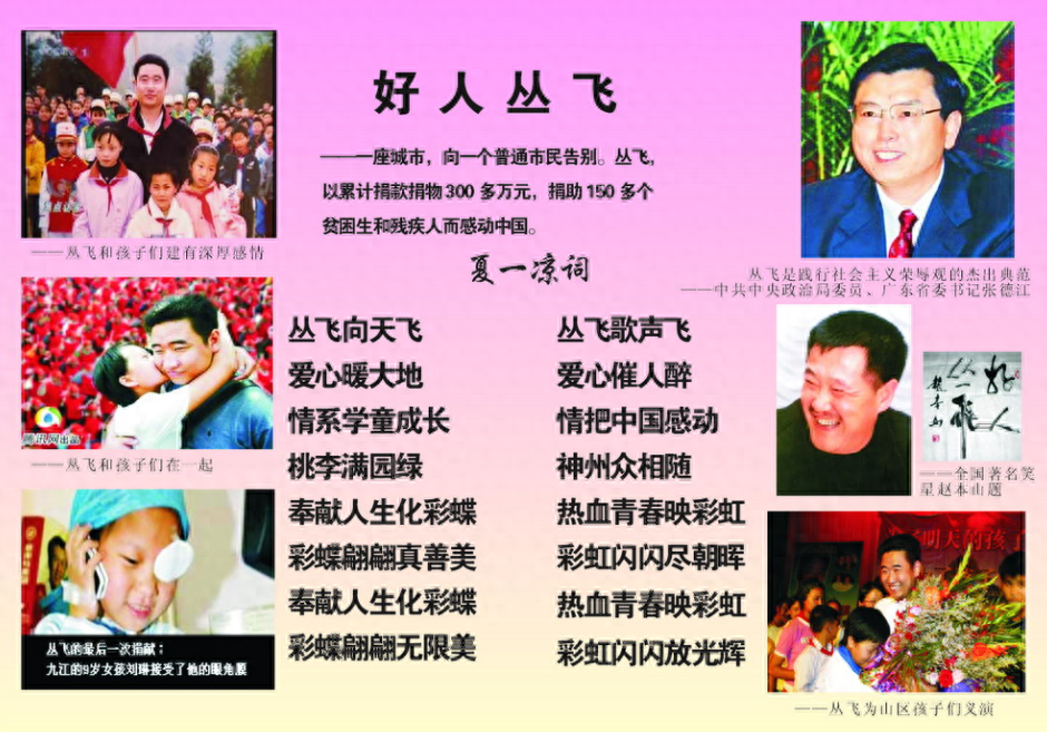 这让丛飞非常震惊,他突然意识到自己小小的举动有可能改变别人的人生。
