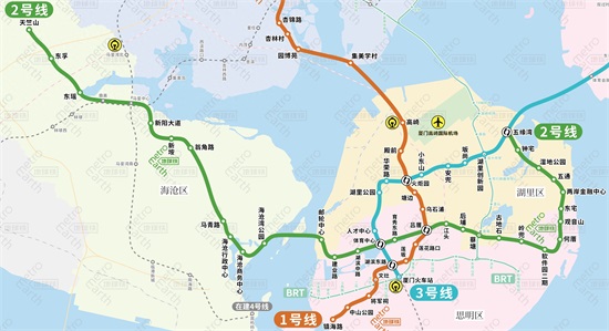 作为厦门市的中心城区,厦门岛内的轨道交通骨干线路已基本完建,岛内市民可便捷搭乘三个不同方向的地铁前往大陆腹地城区。此外,同地铁相辅相成,共担交通重任的还有厦门快速公交(BRT)线路系统。
