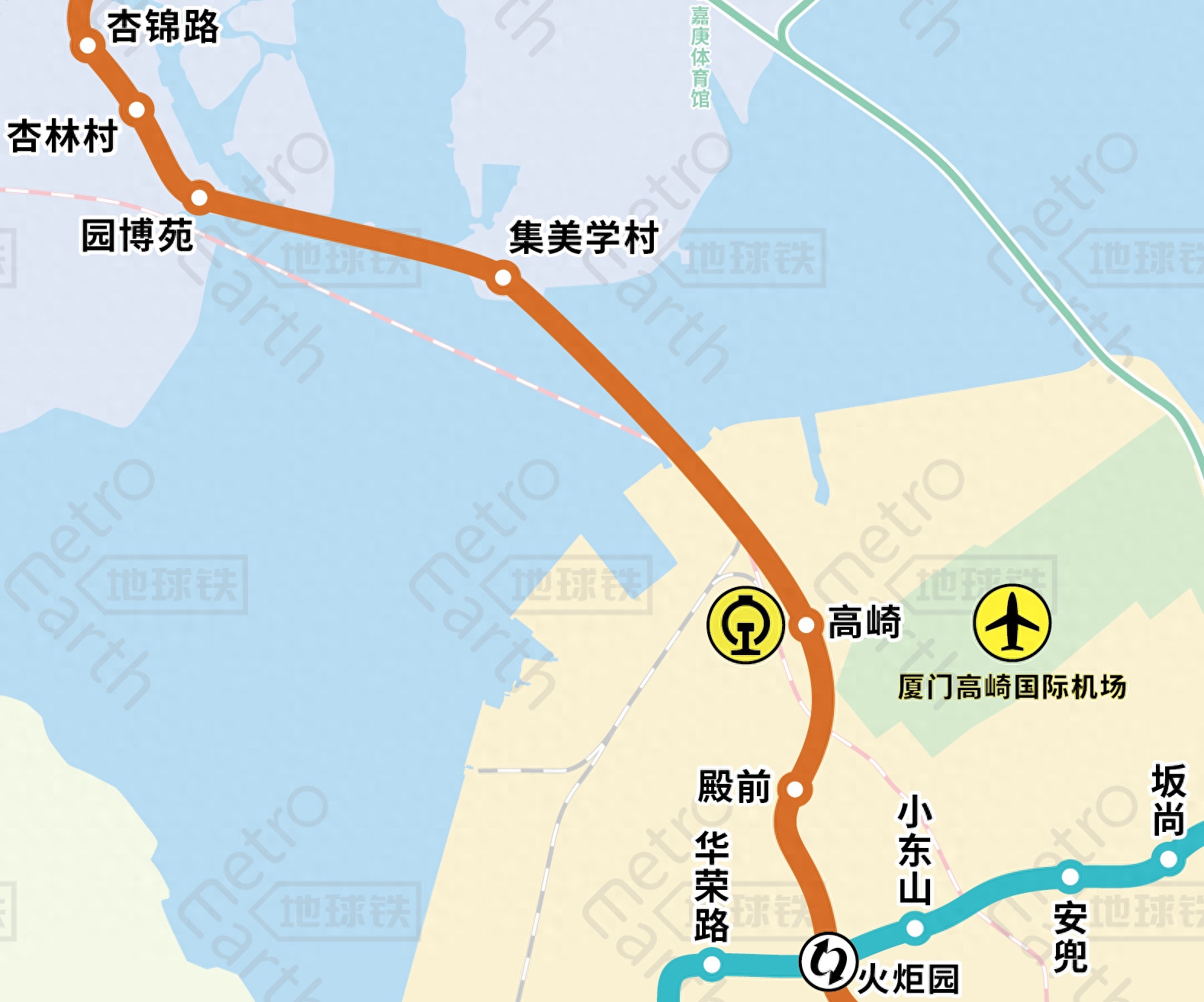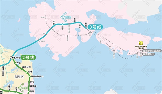 地铁3号线为厦门岛到翔安区的放射骨架线,构建了厦门岛与翔安快速跨海连接通道,并(未来)服务于厦门翔安国际机场。