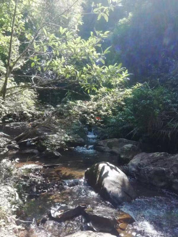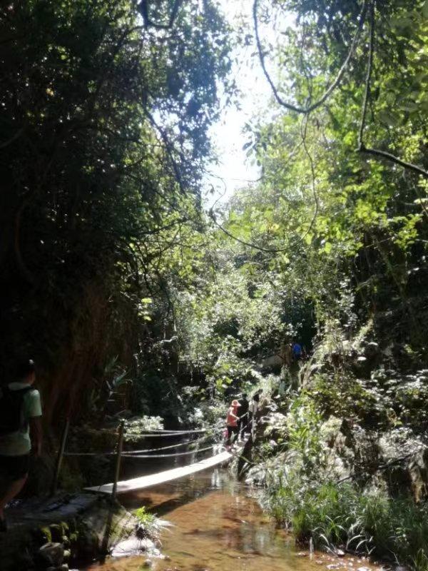 肇庆黄金沟生态景区内“曲径通幽春寂寂,翠竹绿树水潺潺”,山势层恋叠嶂,巍峨峻秀。峡谷两侧悬崖林立,古树森森,山花遍地,古桫椤夹道而生,远古的千层岩,巍然耸立,历经岁月的磨洗,斑驳苍凉,终年水渍淋漓,踩着鹅卵石……穿行过傍溪而上的林荫小径,在峡谷中溯溪而上,瀑布纷叠而来,或潺潺慢淌或雪花飞溅,清洌的溪流,缠绕的古藤,遍生于磷磷乱石间的苔藓,不知名的小鱼,蠢蠢蠕动的山螺……