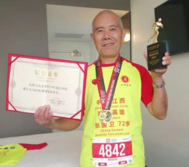 据了解:受澳大利亚墨尔本马拉松组委会邀请,72岁高龄老人张国卫10月10日启程代表进贤长跑协会赴澳大利亚参加了10月13日墨尔本国际马拉松比赛。这次比赛,张国卫老人只用了4小时31分钟跑完了全程,获得最高荣誉奖杯。